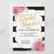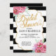 Black and white stripe Bridal Shower Invitations with bright pink floral accents.