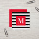 FRONT - Black and white stripe pattern with a customisable bright red single letter monogram. Customise the background colour of the pattern image or the square shape colour. White stripes. Striped pattern.