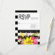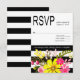This unique and elegant RSVP Response Card features a festive bunch of folklore flowers against modern black and white stripes. Click the CUSTOMIZE IT button to add text. Matching RSVPs, cocktail napkins & more available. For questions or requests for other items with this design, contact: cheryl@cheryldanielsart.com. "Black and White Striped Folklore Flowers" by Cheryl Daniels © 2015.