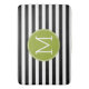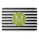 Black and White Striped Pattern Green Monogram Bath Mat
