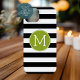 Black and White Striped Pattern Green Monogram Case-Mate iPhone Case