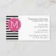 Black and White Striped Pattern Hot Pink Monogram Business Card
