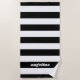 Black and White Striped Pattern Modern Name Beach Towel