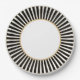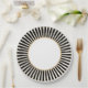 This paper plate features a black and white radial stripe around the edge with a white centre and a gold border. Perfect for New Years Eve or any other formal gathering.