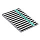 Personalised notebook featuring a pattern of black and white stripes. Across is an aqua blue band with customisable text. Add a name or other text. Elegant, contemporary design for women.