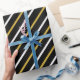 Black and White Stripes on Black Background Wrapping Paper