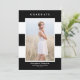 Announce your graduation with this customisable photo graduation announcement. It features black and white stripes pattern. Personalise this modern graduation announcement by adding a photo, name, school, year and other details. This photo graduation announcement card is available in other cardstock.