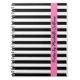 Black and white stripes pink personalised name notebook