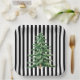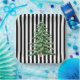 Black and White Stripes Watercolor Christmas Tree Paper Plate