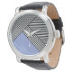Simple abstract geometric design with black and white stripes and blue triangle decoration for everybody who likes simple, modern, geometric design.