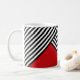 Simple abstract geometric design with black and white stripes and red triangle decoration