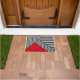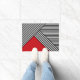 Simple abstract geometric design with black and white stripes and red triangle decoration