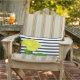 Pop up your outdoor living space with this black and white lumbar pillow. This pillow is must have for lying in the hammock or resting on your patio furniture. The design features a black and white stripe with a yellow hibiscus flower overlay on the front. The back side is solid black. Buy this outdoor decor pillow for yourself or for a gift for that special someone.