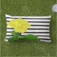 Black and White Stripes with Yellow Hibiscus Lumbar Cushion
