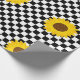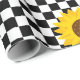 Black and White Sunflower Chequered Flower Pattern Wrapping Paper