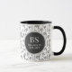 Doodle Swirls in black and white repeating pattern. Elegant mug in black and white personalised with your monogram and name.