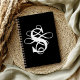 Add your initial to this elegant flourish for a stunning monogram. This beautiful notebook in black and white is perfect for a diary, journal, or simply note-taking. Complementary items are also available, making these excellent gifts! Order now!