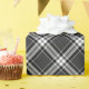 This elegant diagonal square wrapping paper design features a classic black and white Scottish tartan plaid pattern.
