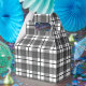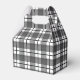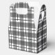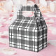 A product or favour box with an original black and white simple glen-inspired horizontal plaid pattern with thin stripes.