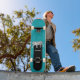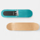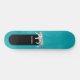 This cool teal blue coloured skateboard has an illustration of a white tiger with black stripes. This board is ready to be personalised with a name or other text in white lettering against a black background.