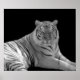 Beautiful photography of a white tiger on a black background, with light green eyes. Stunning poster.