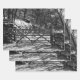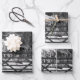 BLACK AND WHITE TREES AND GATE WRAPPING PAPER SHEET