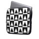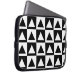 A stylish laptop sleeve with a geometric pattern of black and white monochrome triangles. This design is inspired by modern geometrical art or op art.