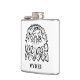 The flask itself is fine. It’s a cheap flask, obviously bought in bulk, however am prepared to overlook that. Given that it is a personalized item, I would have liked to have seen gift boxing instead of the generic packaging. Terrible printing, and/or quality. It’s a cheap, tacky vinyl. It is not cut straight and is also applied in a way that it is overhanging the bottom, causing the glue to catch on items and it will eventually roll and tear, damaging the wrap.
