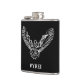 The flask itself is fine. It’s a cheap flask, obviously bought in bulk, however am prepared to overlook that. Given that it is a personalized item, I would have liked to have seen gift boxing instead of the generic packaging. Terrible printing, and/or quality. It’s a cheap, tacky vinyl. It is not cut straight and is also applied in a way that it is overhanging the bottom, causing the glue to catch on items and it will eventually roll and tear, damaging the wrap.