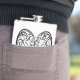The flask itself is fine. It’s a cheap flask, obviously bought in bulk, however am prepared to overlook that. Given that it is a personalized item, I would have liked to have seen gift boxing instead of the generic packaging. Terrible printing, and/or quality. It’s a cheap, tacky vinyl. It is not cut straight and is also applied in a way that it is overhanging the bottom, causing the glue to catch on items and it will eventually roll and tear, damaging the wrap.