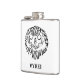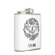 The flask itself is fine. It’s a cheap flask, obviously bought in bulk, however am prepared to overlook that. Given that it is a personalized item, I would have liked to have seen gift boxing instead of the generic packaging. Terrible printing, and/or quality. It’s a cheap, tacky vinyl. It is not cut straight and is also applied in a way that it is overhanging the bottom, causing the glue to catch on items and it will eventually roll and tear, damaging the wrap.