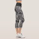 Black And White Tropical Leaf Repeating Pattern Capri Leggings