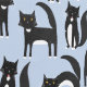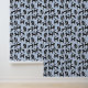 Black and White Tuxedo Cat Blue Pattern Wallpaper