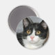 This cat-themed magnet design features a digital colour photograph of a domestic (American) shorthair (DSH) black and white shelter cat from Frederick County Animal Control. It makes a unique gift for cat lovers!