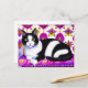Black and White Tuxedo Cat on a Cushion Postcard