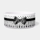 A girly Victorian style black and white pattern with stylish polka dots on the top and trendy style stripes on the bottom divided by eyelet lace and a black ribbon tied into a chic bow.