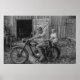 Black and White Vintage 2 Boys on a Motorcycle Poster