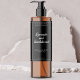 This waterproof product label for cosmetic bottles features a black background with white text. This label contains space for your product name, business name, product weight, ingredients, instructions, social media, and business address. This label measures 4 inches by 3.5 inches (102 mm by 89 mm) and is suitable for bottles with a diameter of 1.3 inches (33 mm) or more and a label height area of at least 3.5 inches (89 mm). Most 8 oz (240 ml) and 16 oz (480 ml) bottles fit this description (specifically cosmo or bullet and cylinder style bottles), but check the bottle specifications to be sure. This label makes a great choice for packaging beauty products that require larger waterproof labels like shampoos, hair conditioners, lotions, shower gels, shaving foams, cleansing foams, body washes, bubble baths, and hair oils.