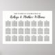 Simply elegant wedding seating chart poster design features a monogram of the bride and groom names and custom template text for twenty-one (21) tables with guest names. Classic black and white colour scheme can be customised to coordinate with your colours.