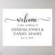Modern black and white wedding welcome sign featuring the names of the couple and the wedding date.