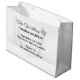 A gift bag as a wedding favor bag with black text on white background for couples seeking a classic and timeless color combination that can complement various wedding themes. It is also suitable for couples who prefer a text based design without background elements for readability. The black text contrasting on the white background also improves readability. The text is center aligned and the fonts used are calligraphy, script and sans serif. Calligraphy and script fonts are used to enhance the design while the sans serif font is used to enhance readability. Customize it by typing the names of the bride and groom, date and location of the wedding. You can also change the wording in the design tool including the font style and color. Please check the appearance after typing text. If the appearance is pleasing to you, you can place your order now. If you need to resize or reposition the text, please adjust in the design tool. To the bride and groom, congratulations on your engagement! Wishing you both a lifetime filled with love and happiness.