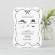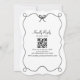 Stylish black and white wedding invitation with a hand-drawn doodle bow, couple, and elegant modern calligraphy script. Add your QR code for RSVP online and wedding website for more info. A perfect blend of chic and romantic charm.