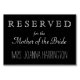 Black reserved wedding sign with white text. Print the title of the member of the wedding party or family, with their name at the bottom in tall, printed font style. This example is for the Mother of the Bride, but could be for any family member, or for a bridesmaid / best man.