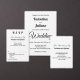 Collect your guests’ responses with this black and white plain text wedding RSVP, a classic and timeless colour that can complement various wedding themes. A design for couples or hosts who prefer plain text without elements in the background for ease of reading. The black texts contrasting on the white background also improves readability. The fonts used are calligraphy, script and sans serif. Calligraphy and script fonts are used to enhance the style while the sans serif font is used to enhance readability and clarity. Customise it by typing the names of the bride and groom, RSVP details and meal choices. You can also change the contents or wordings in the design tool including the font style, font colour and background colour. Please check the appearance of the front and back sides after typing texts. If the appearance is pleasing to you, you can place your order now. If you need to resize or reposition the texts, please adjust in the design tool. To the bride and groom, congratulations on your engagement! Wishing you both a lifetime filled with love and happiness.