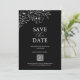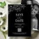 Announce your special day in style with this black and white wedding save the date featuring delicate white anemone line art by Victoria Grigaliunas of Do Tell A Belle. The minimal, modern, and classy design includes a customisable QR-code to easily share your wedding details. The card reverses to reveal your photo, making it both personal and elegant. Use the save the date templates to add your custom text, then choose between printed cards or a digital download for online sharing.