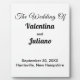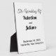 A tabletop plaque with black text on white background for couples seeking a classic and timeless color combination that can complement various wedding themes. This is also suitable for couples who prefer a text based design without background elements for readability. The black text contrasting on the white background also improves readability. The text is center aligned and the fonts used are calligraphy, script and sans serif. Calligraphy and script fonts are used to enhance the design while the sans serif font is used to enhance readability. Customize it by typing the names of the bride and groom, date and location of the wedding. You can also change the wording in the design tool including the font style, font color and background color. Please check the appearance after typing text. If the appearance is pleasing to you, you can place your order now. If you need to resize or reposition the text, please adjust in the design tool. Tabletop plaque to enhance wedding table setting and add a touch of personalization. To the bride and groom, congratulations on your engagement! Wishing you both a lifetime filled with love and happiness.