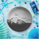 Black and white wedding under the mountains. Landscape photograph of a snow covered mountain with darkness below and white cloudy sky above. Names of the couple are in black font above the mountain in the sky and all the details are in white font below the mountain. Completely customisable and personalizable wedding products.