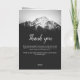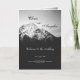 Black and white wedding under the mountains. Landscape photograph of a snow covered mountain with darkness below and white cloudy sky above. Names of the couple are in black font above the mountain in the sky and all the details are in white font below the mountain. Completely customisable and personalizable wedding products.