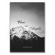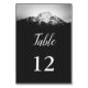 Black and white wedding under the mountains. Landscape photograph of a snow covered mountain with darkness below and white cloudy sky above. Names of the couple are in black font above the mountain in the sky and all the details are in white font below the mountain. Completely customisable and personalizable wedding products.