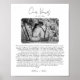 Celebrate your special moments with our Custom Wedding Vows with Photo Print. This elegant black and white wedding vows photo poster makes an ideal wedding gift, 1st anniversary gift, or keepsake. Upload your favourite wedding photo to be transformed into a sleek, minimalistic style that complements any decor. Personalise the template with your wedding date and the vows you and your partner wrote, with beautifully scripted names at the bottom. This classic, timeless keepsake is perfect as a gift for your husband or wife to cherish your love and commitment. Order in a standard size for easy framing to elevate your gift!